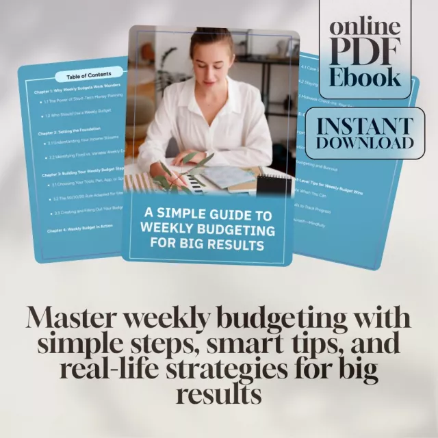 Ready to stop feeling overwhelmed by your finances? A Simple Guide to Weekly Budgeting for Big Results is your practical, no-fluff eBook designed to help you finally master how to make a weekly budget that works in real life. Whether you’re tired of paycheck-to-paycheck stress or you want a system that helps you stay accountable without burning out, this guide is packed with straightforward tips, relatable examples, and easy steps anyone can follow. If you’ve ever wondered how to make a weekly budget that actually sticks, this is your starting point.