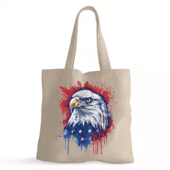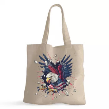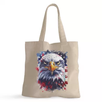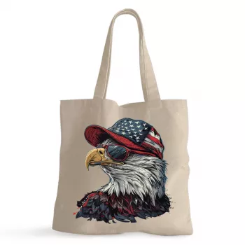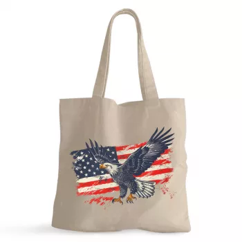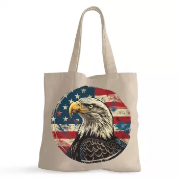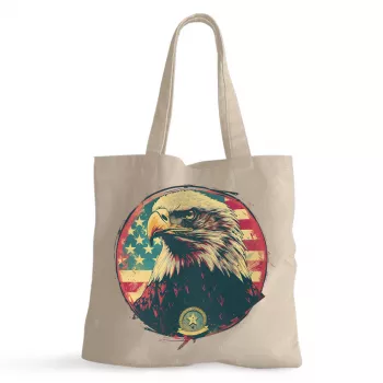 Patriotic American Eagle 100% Cotton Tote Bag – Veteran Grocery Shopping Cloth Bag – USA Eco-friendly Tote Bag